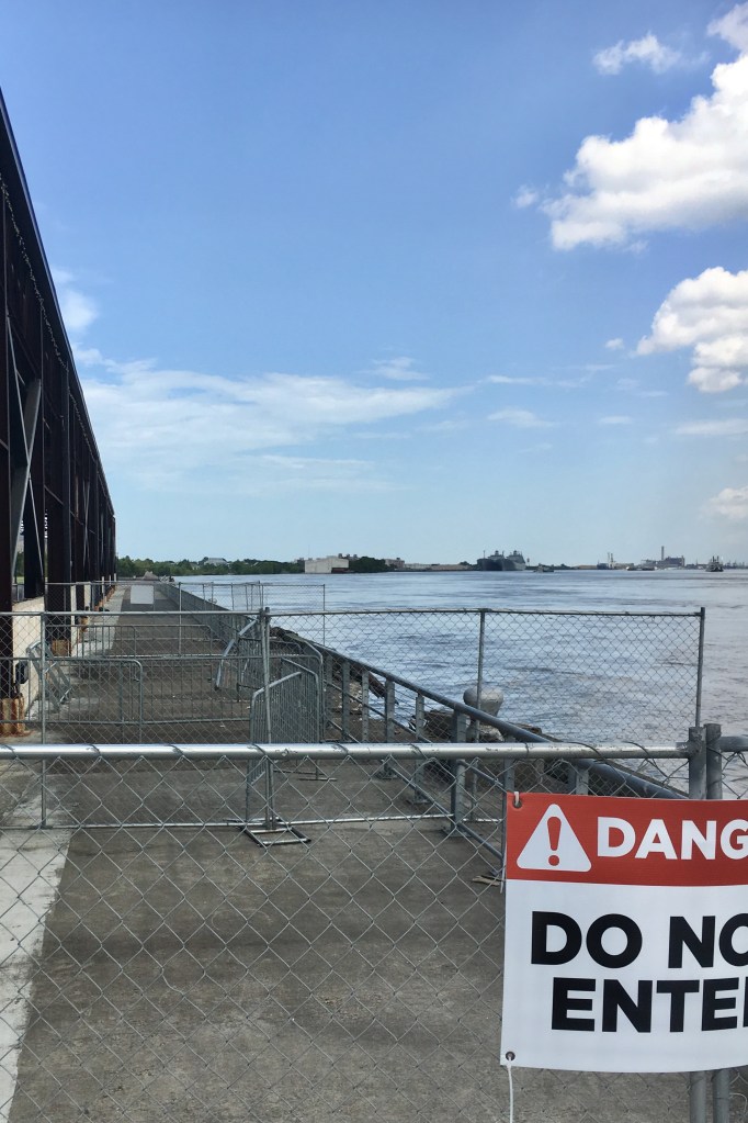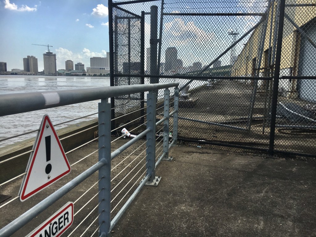 It is so beautiful to have Crescent Park, yet the park is clearly one of the best locations for catching river barges that run into land. The pictures of where the public cannot go are questions of the relationships between a park and the public. We can see the cranes and the active development of downtown New Orleans real estate, but there seem to be more and more places that explicitly inform others where we cannot go.