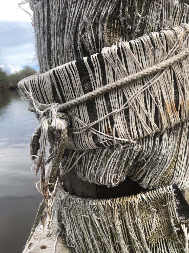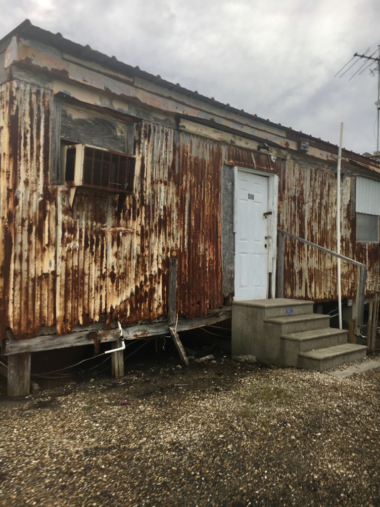 The picture with the off-shore submersable leaves a lasting impression. There was a film done on this barrier island and it seems that even the film leaves remnants. Like a padlock on a bridge. Perhaps a placemaking tool, perhaps heavy garbage. There is a clause in the buyout contract for residents of Isle de Jean Charles that that says you can no longer upgrade your house. If residents accept the buyout, they sign two mortgages. One for their new free home in a new subdivision, and one for the home on the island which allows them access to that land, but prevents improvements on their home. The goal of the buyout is to move residents; to depopulate unstable land. The contractual language of the process of coastal landloss is echoed and drawn out in the photos from the island to articulate the odd dissonance that someone else buying land there without such a mortgage is subsequently not subject to the restrictions because they do not sign a contract with the United States government. You can be of Isle de Jean Charles but paradoxically and ruthlessly, it is going to be very difficult to be from Isle de Jean Charles.